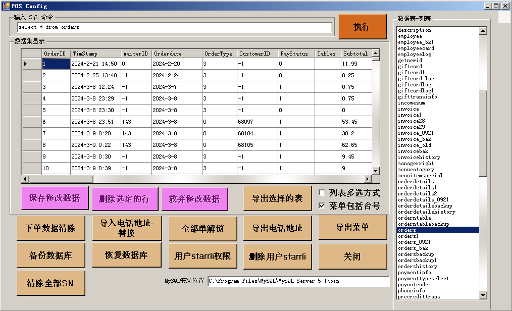 可操作控制系统的Mysql数据库和SQLite本地数据库文件,免去安装第三方工具